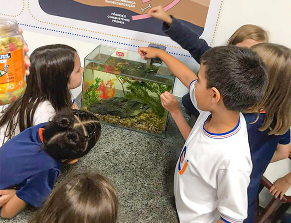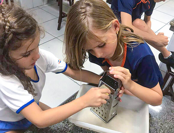 Para os Anos Iniciais, o período Semi-Integral também se estende até o horário do almoço e inclui tempo para estudos. No período Integral, os alunos desfrutam de uma programação ainda mais completa, que inclui atividades de iniciação científica, teatro, música, culinária, oficinas de criação artística, cuidado com a horta, recreação e esportes.