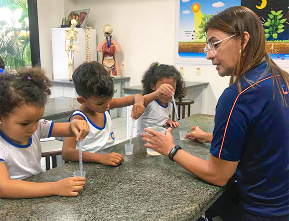 Para a Educação Infantil, o período Semi-Integral é estendido até o horário do almoço. Já o período Integral amplia as possibilidades de aprendizado com oficinas de criação artística, fabricação de brinquedos reciclados, culinária, recreação, esportes, música e atividades de iniciação científica